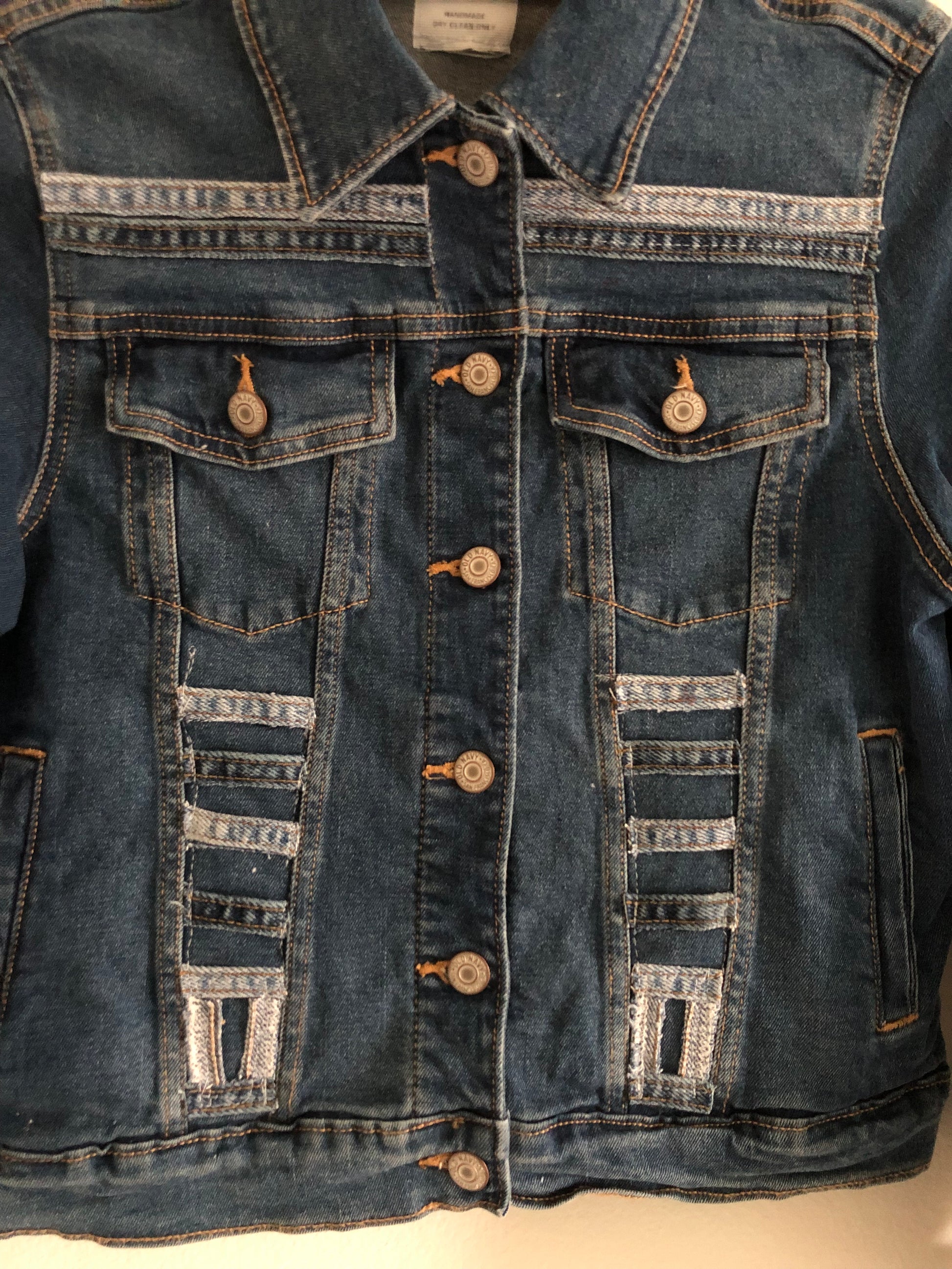 Inspired by the rhythm of the tide, the Denim Currents Jacket flows with layers of hand-cut denim waves, stitched together to mimic the movement of the ocean. Shades of blue drift from deep indigo to soft coastal hues, bringing a natural texture and depth to this one-of-a-kind upcycled piece.