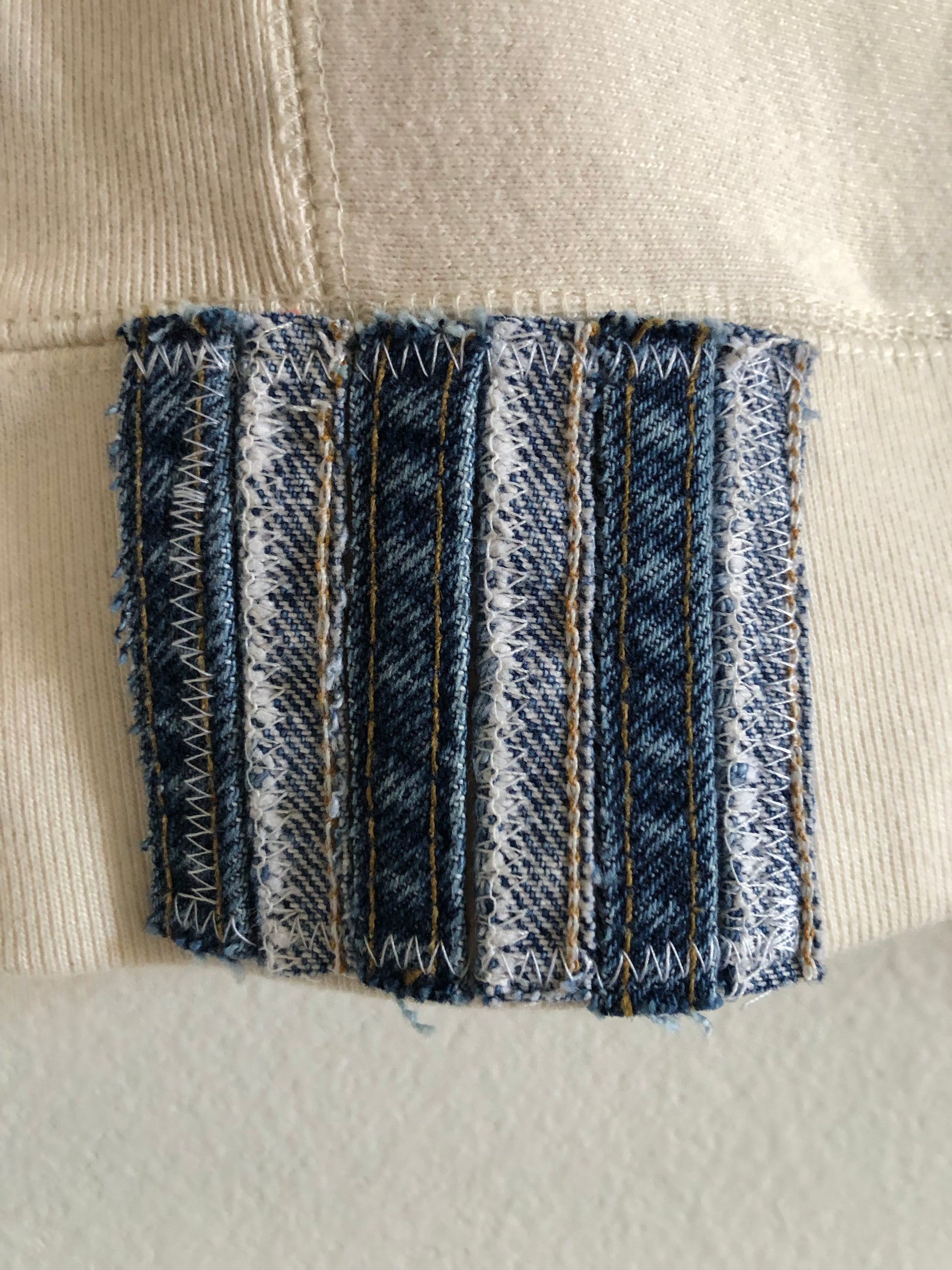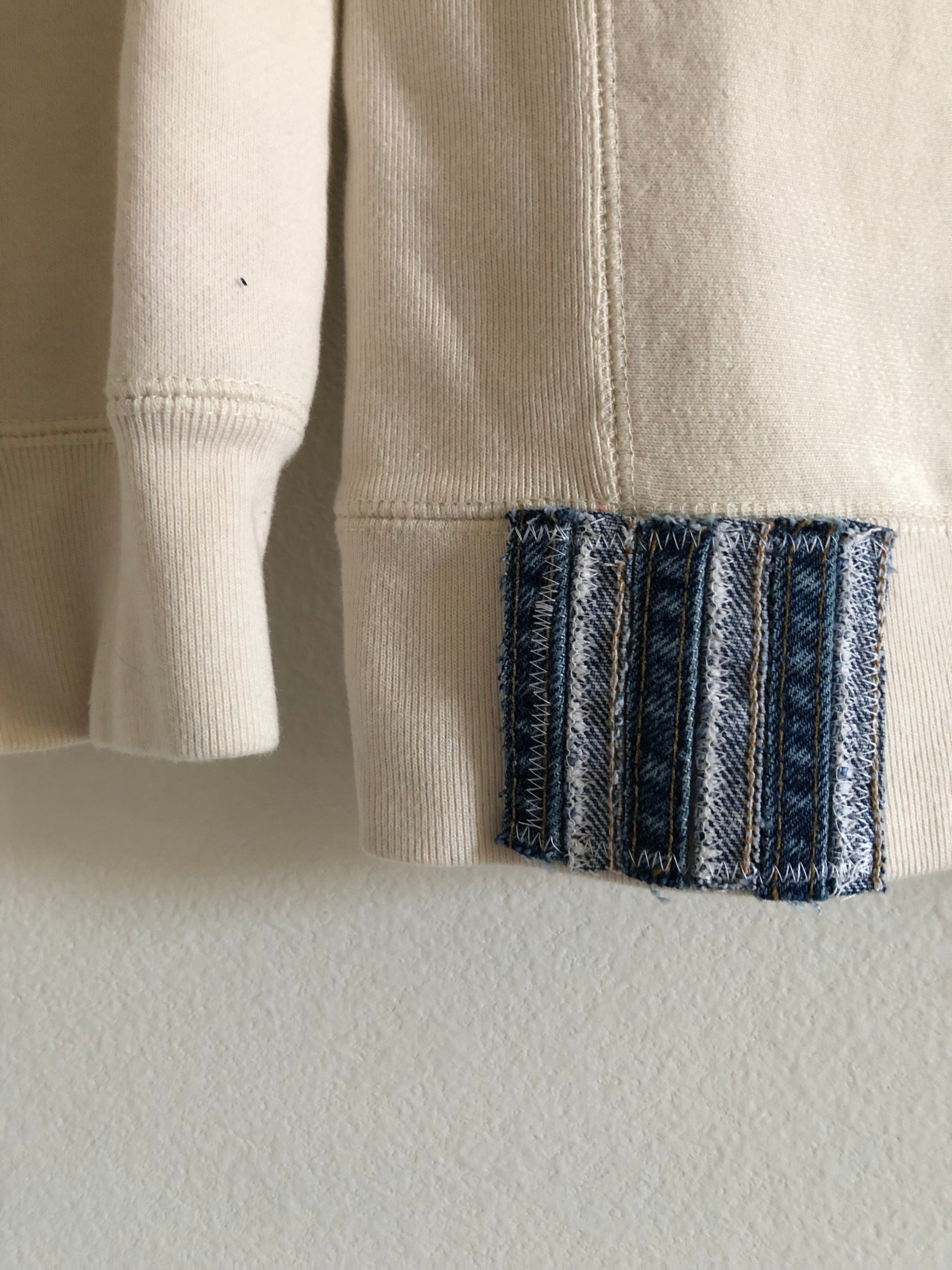 Material: Upcycled sweatshirt cotton + reclaimed denim and flannel